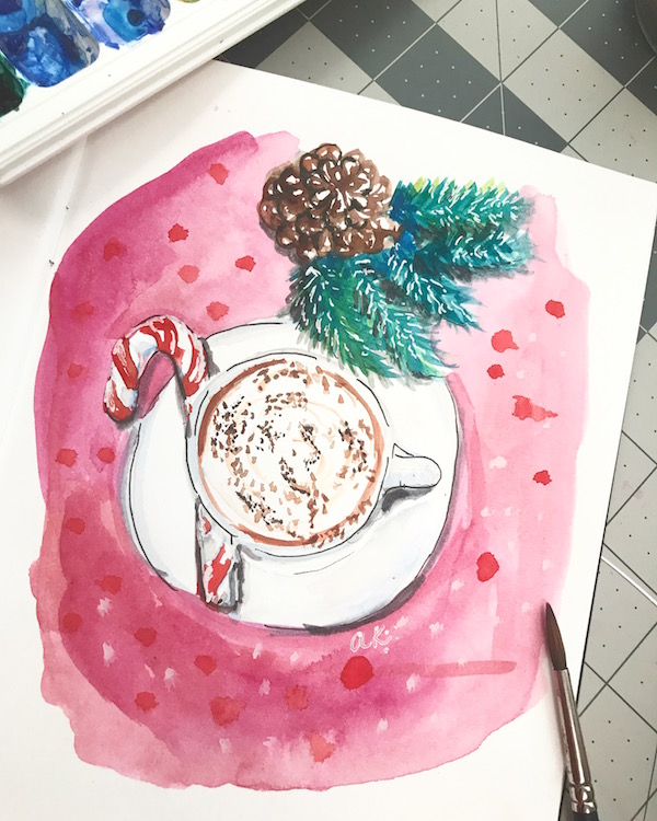 hot chocolate watercolor greenrainart Previous Next Published January 11, 2018 at 600 × 750 in Catch up post: December 2017